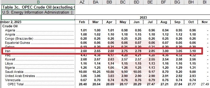 آمار ماهانه این نهاد وابسته به وزارت انرژی آمریکا نشان می دهد تولید نفت ایران از ابتدای سال ۲۰۲۳ روندی صعودی پیوسته ای را طی کرده است. تولید نفت ایران از ابتدای این سال بیش از ۵۰۰ هزار بشکه در روز افزایش داشته است.
